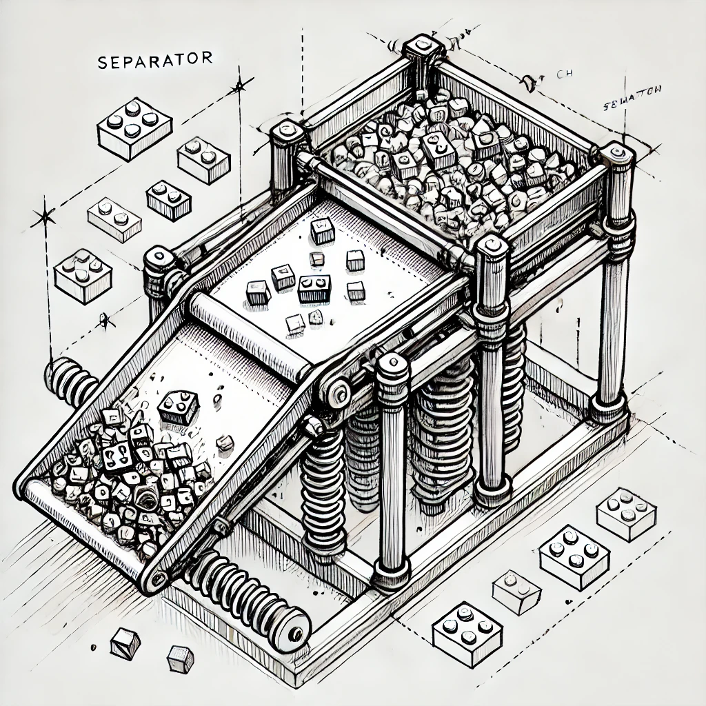 Once the bricks are fed into the machine, they encounter the Separator. This component's job is deceptively simple: take a tangled mess of bricks and separate them into individual pieces, delivering them one by one to the next stage. Sounds easy until you consider the vast variety of LEGO pieces.
